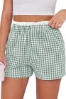 Plus Size Green Contrast Trim Plaid Print Shorts
