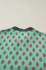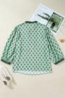 Plus Size Green Floral Print Contrast Trim V Neck Bracelet Sleeve Blouse
