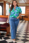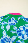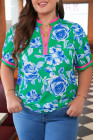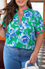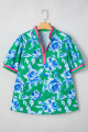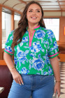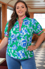 Plus Size Green Floral Print Short Puff Sleeve Top