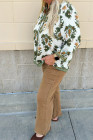 Plus Size Green Floral Printed Contrast Patchwork Detail Tassel Tie 3/4 Sleeve Blouse