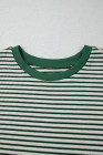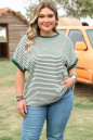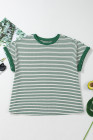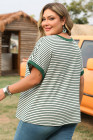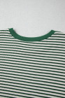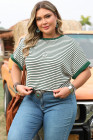 Plus Size Green Stripe Trimmed Round Neck Boxy Fit T-shirt