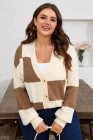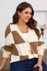Plus Size Khaki Checkered Ribbed Texture Knit Cardigan Sweater