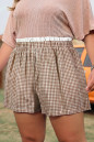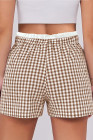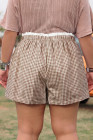 Plus Size Khaki Contrast Trim Plaid Print Shorts