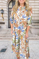 Plus Size Khaki Floral Print 3/4 Sleeves Tiered Long Dress