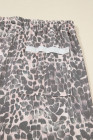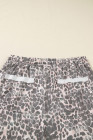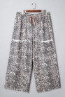 Plus Size Khaki Leopard Print Raw Edge Patch Pocket Drawstring Loose Pants