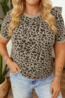 Plus Size Khaki Leopard Print Textured T Shirt