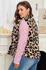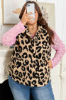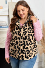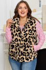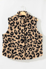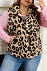 Plus Size Khaki Leopard Sherpa Button Front Collared Vest Jacket