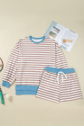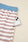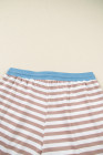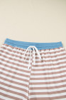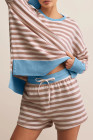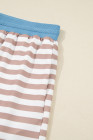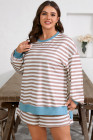 Plus Size Khaki Stripe Contrast Edge Drop Shoulder Pullover and Shorts Set