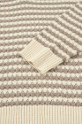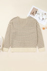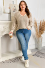 Plus Size Khaki Stripe V Neck Drop Shoulder Sweater