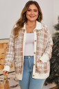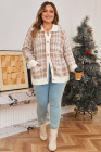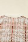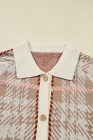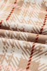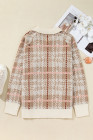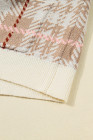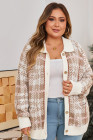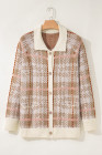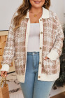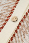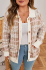 Plus Size Khaki Vintage Pattern Ribbed Trim Button Front Cardigan Sweater