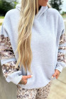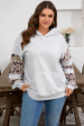 Plus Size Light Grey Camouflage Patchwork Asymmetric Sleeve Hoodie