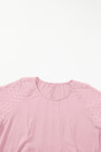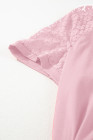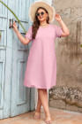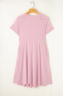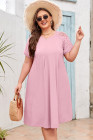 Plus Size Light Pink Solid Color Lace Short Sleeve Pleated Swing Dress