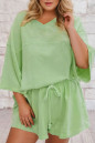 Plus Size Meadow Mist Green V Neck Drop Shoulder Tee Loose Shorts 2pcs Outfit