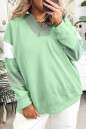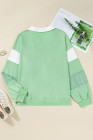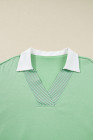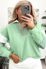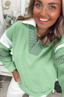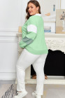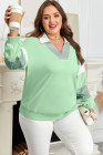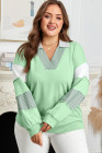 Plus Size Moonlight Jade Color Block Striped Patchwork Collar V Neck Sweatshirt