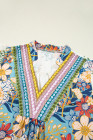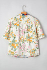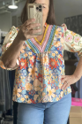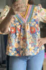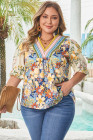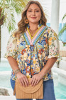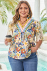 Plus Size Multicolour Floral Print Woven V Neck Half Sleeve Blouse