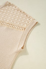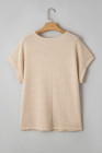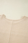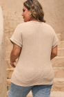 Plus Size Oatmeal Lace Patchwork Waffle Short Sleeve Top