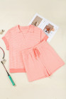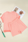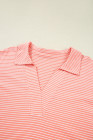 Plus Size Orange Stripe Loose Polo T Shirt and Shorts 2pcs Outfit
