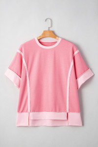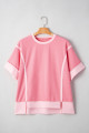 Plus Size Peach Blossom Two Tones Patchwork Half Sleeve T Shirt
