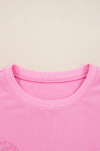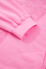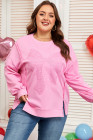 Plus Size Pink Big Bow Lace Embroidered Dolman Sleeve Slit Sweatshirt