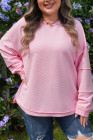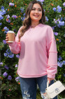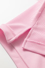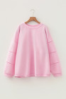 Plus Size Pink Drop Shoulder Long Sleeve Ribbed Top