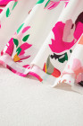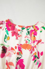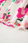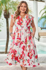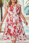 Plus Size Pink Floral Print V Neck Ruffle Sleeve Midi Dress