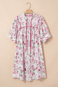 Plus Size Pink Floral Split Neck Short Sleeve Loose Mini Dress