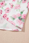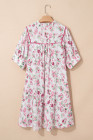 Plus Size Pink Floral Split Neck Short Sleeve Loose Mini Dress