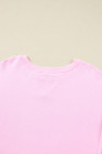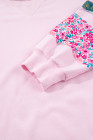 Plus Size Pink Mix Floral Patched Sleeve Ribbed Trim Baggy Sweatshirt
