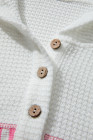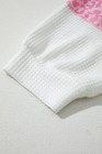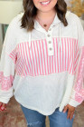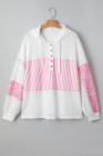 Plus Size Pink Stripe Leopard Patchwork Waffle Knit Buttoned Hoodie