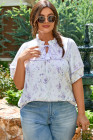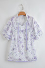 Plus Size Purple Floral Trimmed Detail Split Neck Top