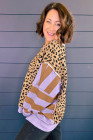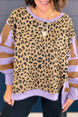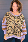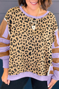 Plus Size Purple Leopard Striped Patchwork Loose Sweatshirt