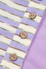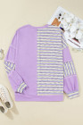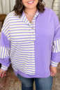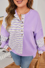 Plus Size Purple Stripe Patchwork Buttoned Drop Shoulder Pullover