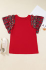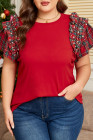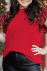 Plus Size Racing Red Plaid Pearl Ruffled Short Sleeve Knitted Christmas Holiday T-shirt