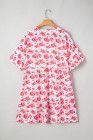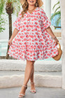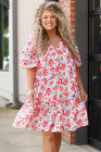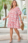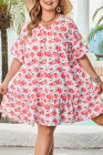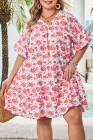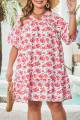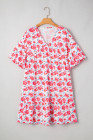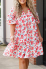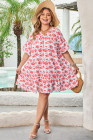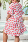 Plus Size Red Floral Ruffled Half Sleeve V Neck Dress