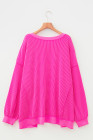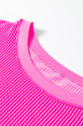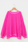 Plus Size Rose Red Drop Shoulder Uneven Hem Twisted Rib Top