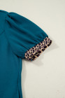 Plus Size Sea Green Leopard Patchwork Detail Quarter Zip Collared Mini Dress