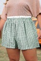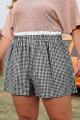 Plus Size Sky Blue Contrast Trim Plaid Print Shorts