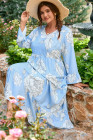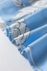 Plus Size Sky Blue Floral Bracelet Sleeve V Neck Tiered Maxi Dress