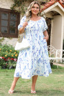 Plus Size Sky Blue Floral Print Sweetheart Neck Midi Dress