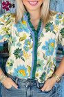 Plus Size Sky Blue Frilled V Neck Short Sleeve Floral Blouse