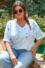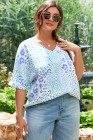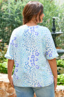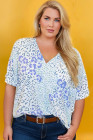 Plus Size Sky Blue Leopard Print Short Sleeve V Neck Top