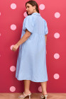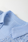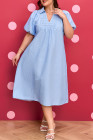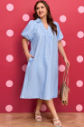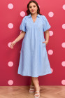 Plus Size Sky Blue Stripe Shirred Detail Collar V Neck Midi Dress
