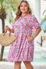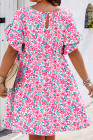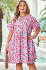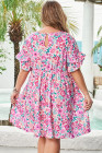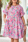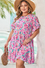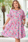 Plus Size White Floral Print Frilled Short Sleeve Flare Dress