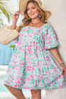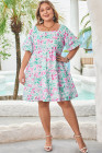 Plus Size White Floral Print Ric-rac Trim Square Neck Mini Dress