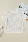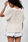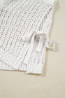Plus Size White Open Knit Bow Tie Short Sleeve Sweater
