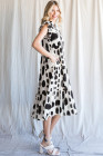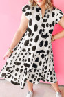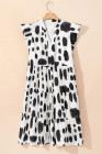 Plus Size White Polka Dot Print Ruffled Sleeve Pocketed Midi Dress