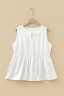 Plus Size White Solid Color Bow Tie Peplum Tank Top