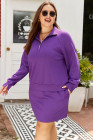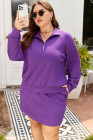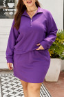 Plus Size Wisteria Collar Half Zip Pullover Mini Skirt 2pcs Set
