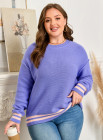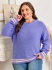 Plus Size Wisteria Striped Trim Drop Shoulder Knit Loose Sweater