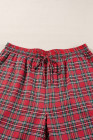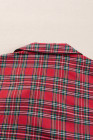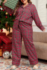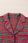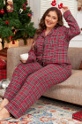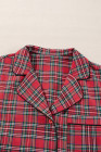 Plus Size Red Plaid Printed Shirt and Pants Lounge Set